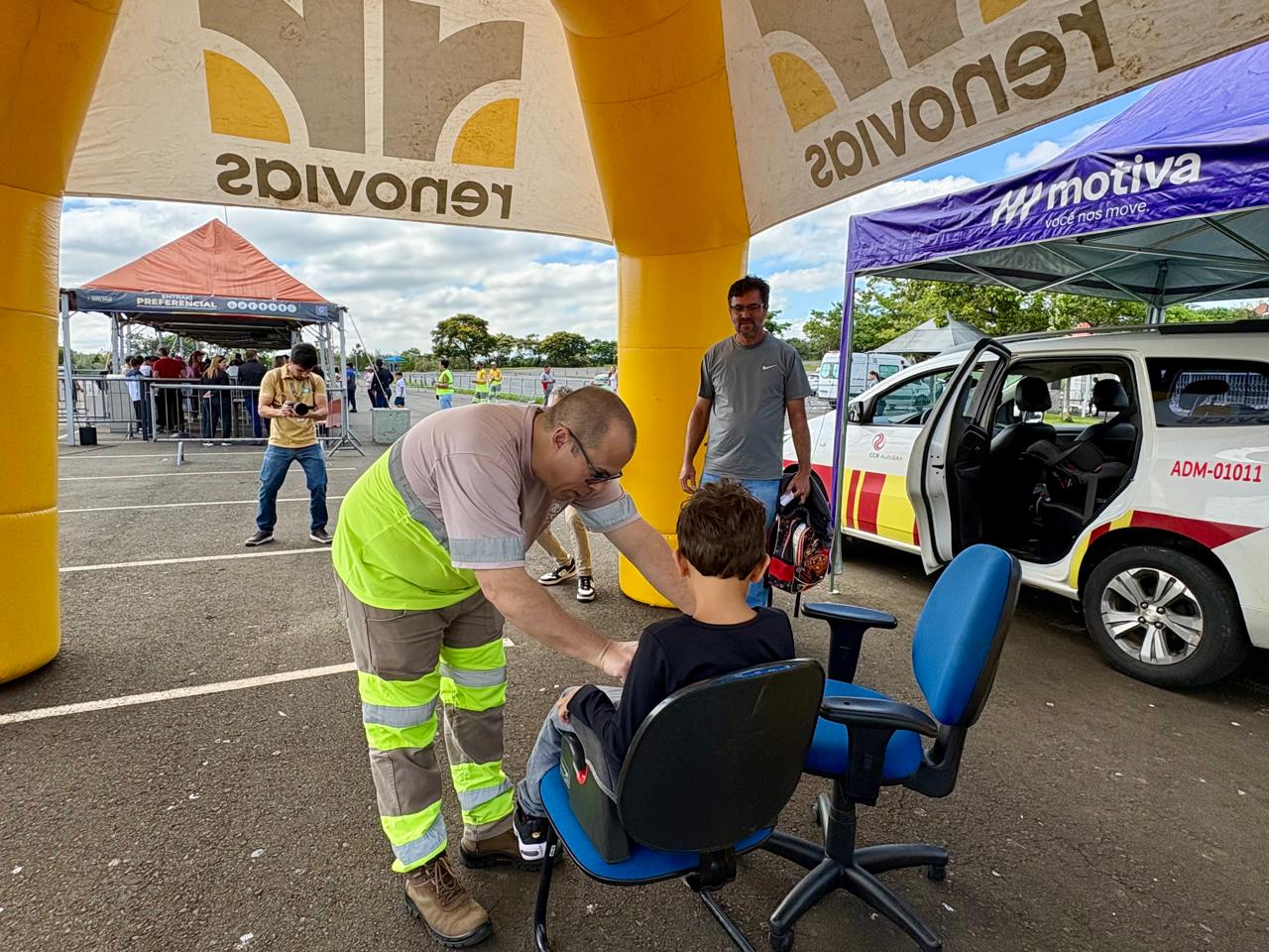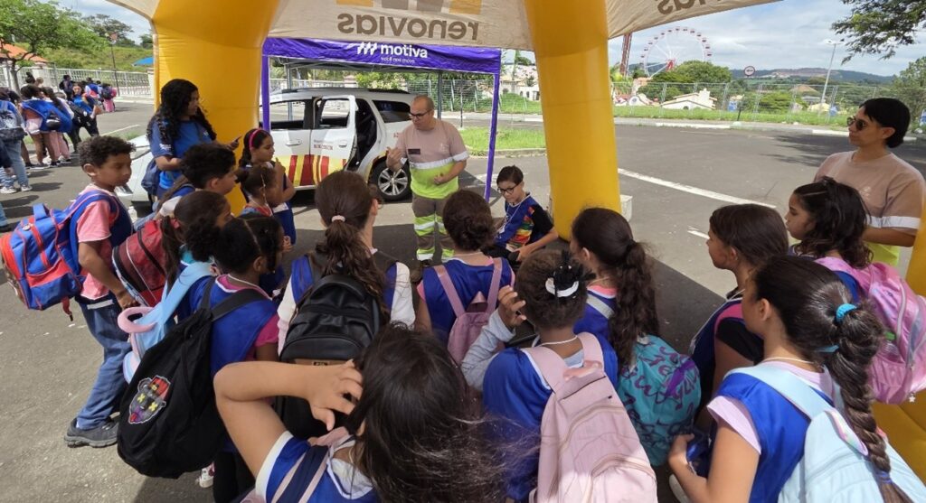 A Renovias e a Motiva Autoban realizaram uma ação educativa no estacionamento do parque Hopi Hari voltada ao transporte seguro de crianças com menos de 10 anos. A ideia é alertar os pais sobre o uso correto do dispositivo de segurança, especialmente este ano, em que o número de feriados prolongados é grande e as viagens devem ocorrer com maior frequência.